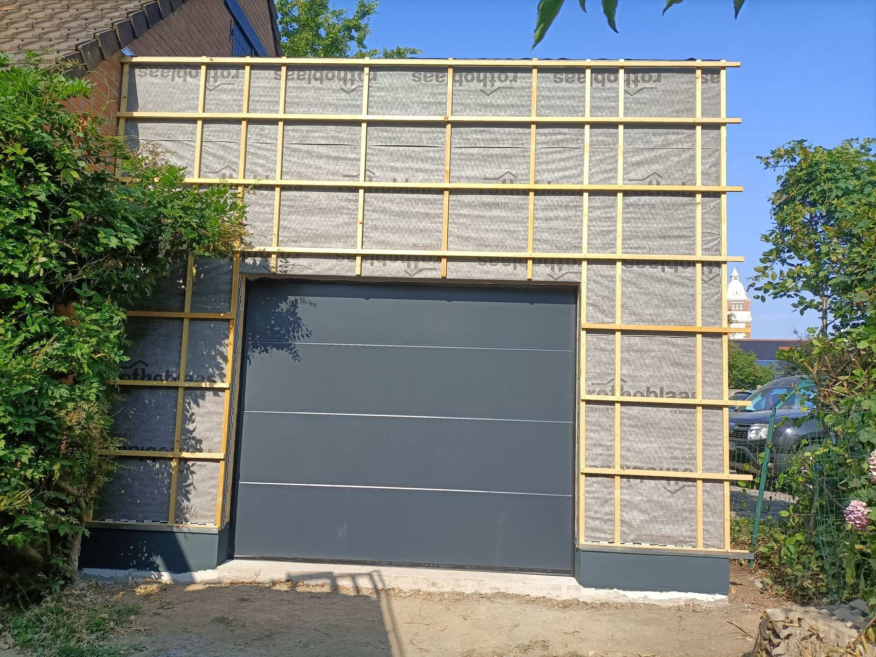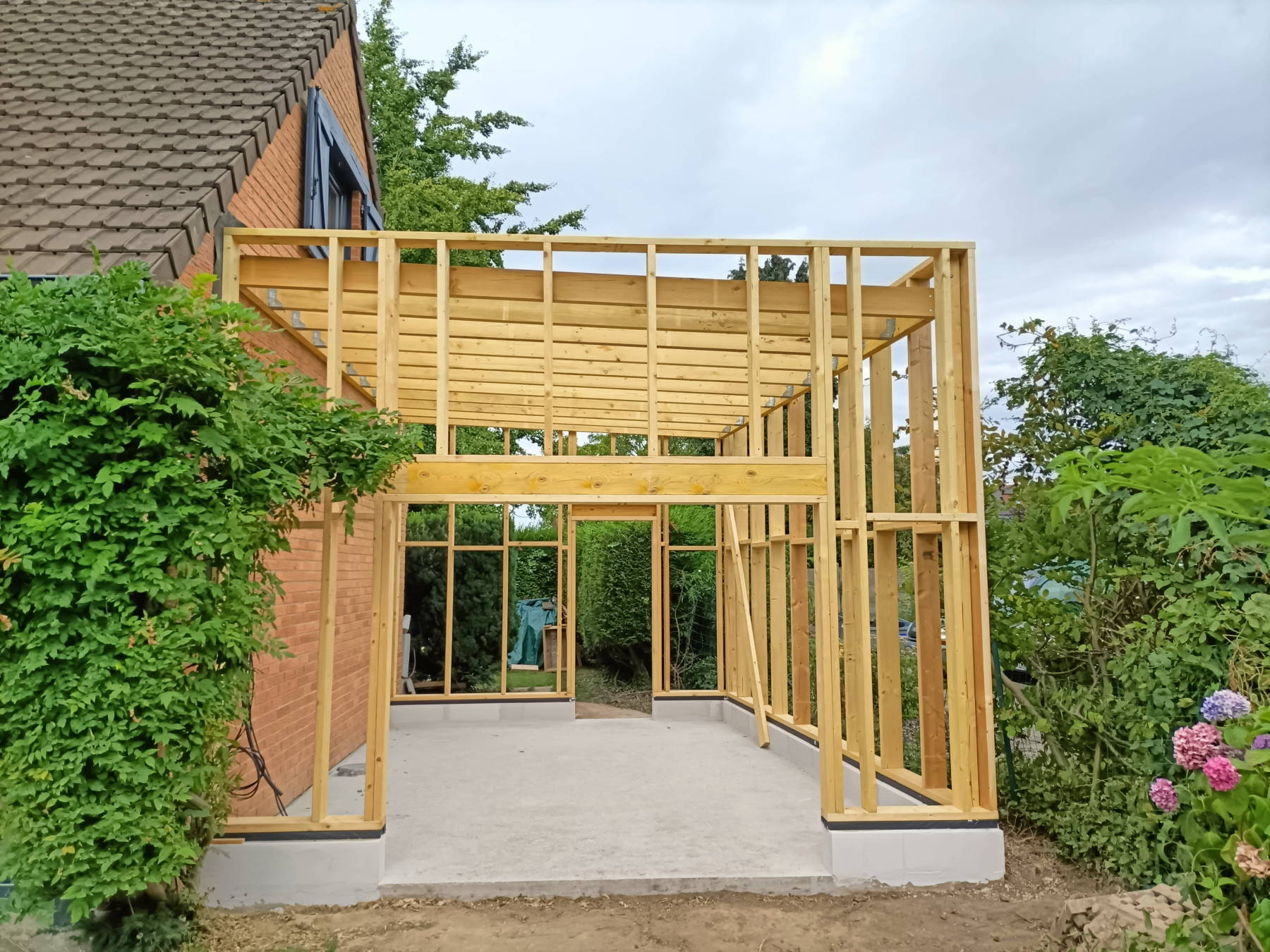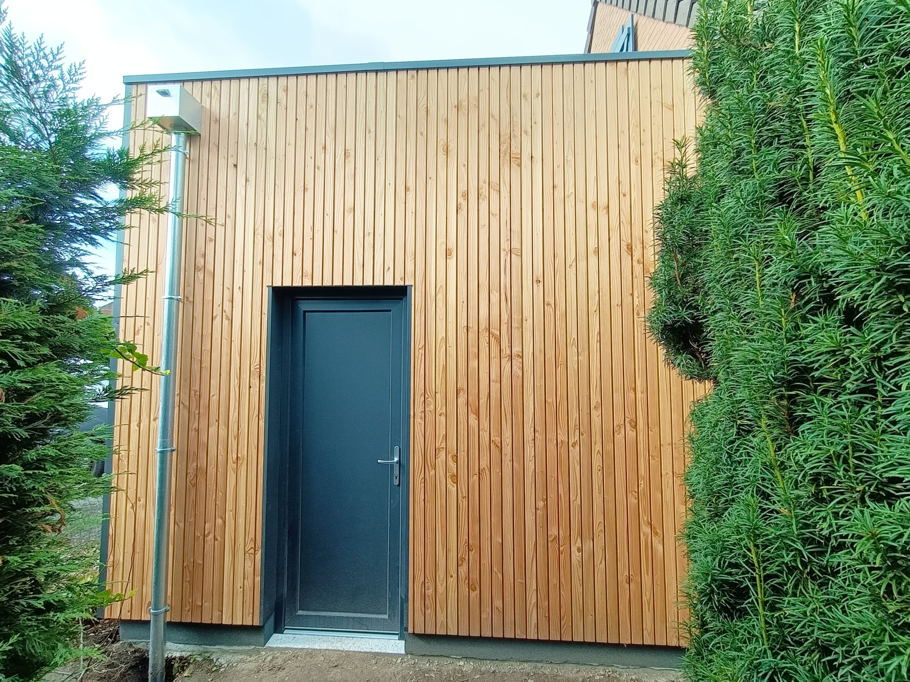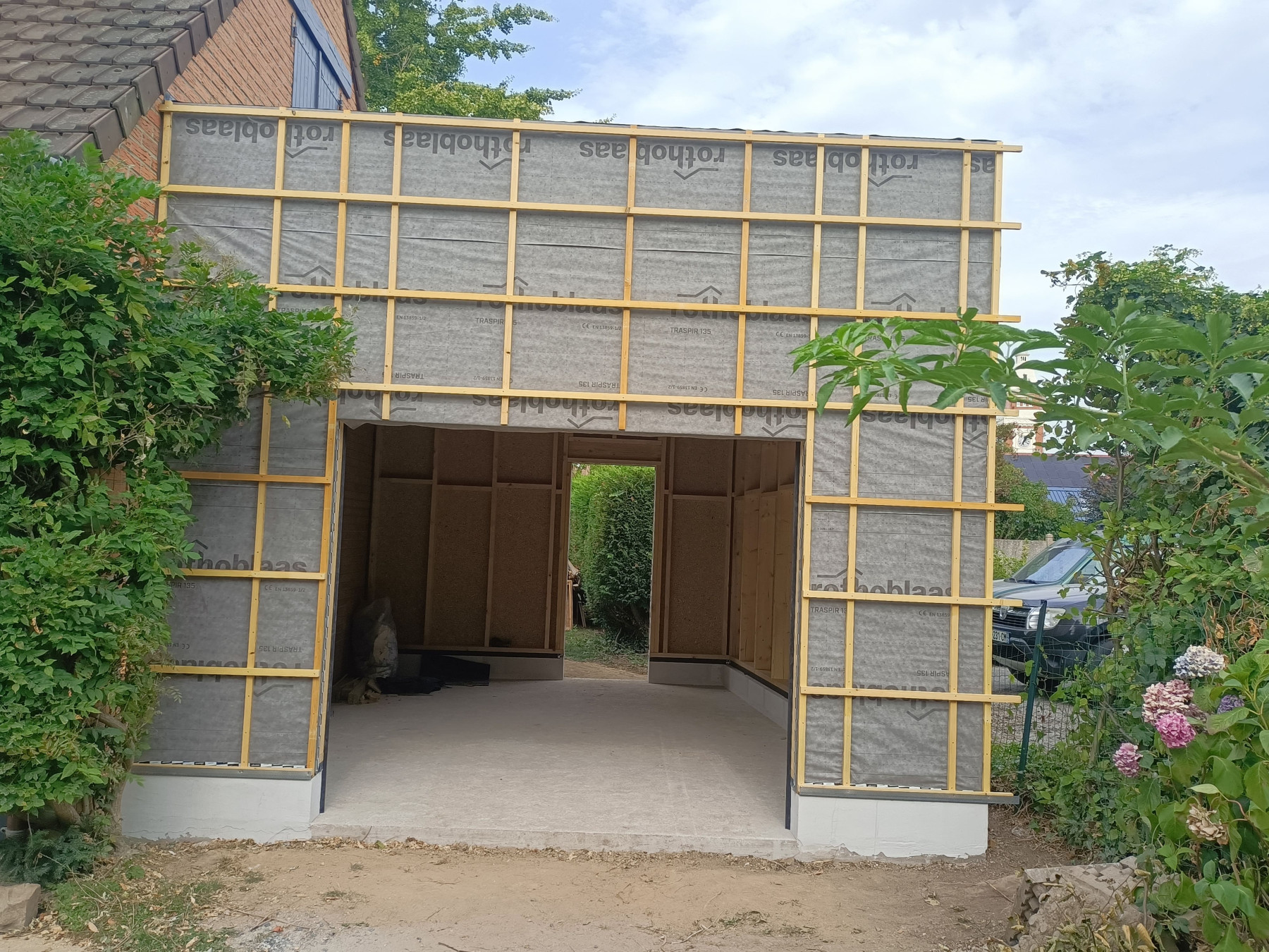 Garage en ossature bois avec bardage en faux claire voie naturel | Lesquin