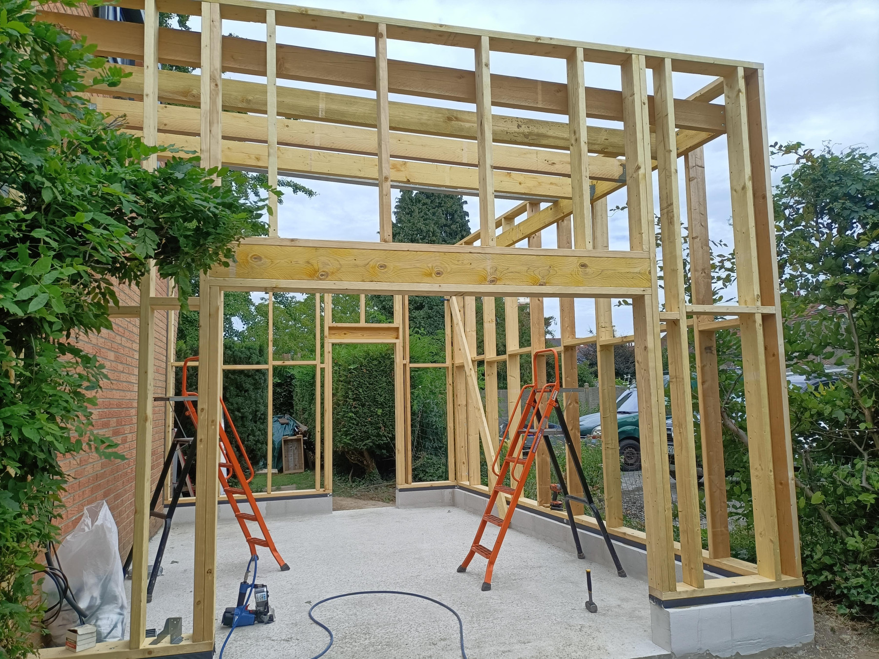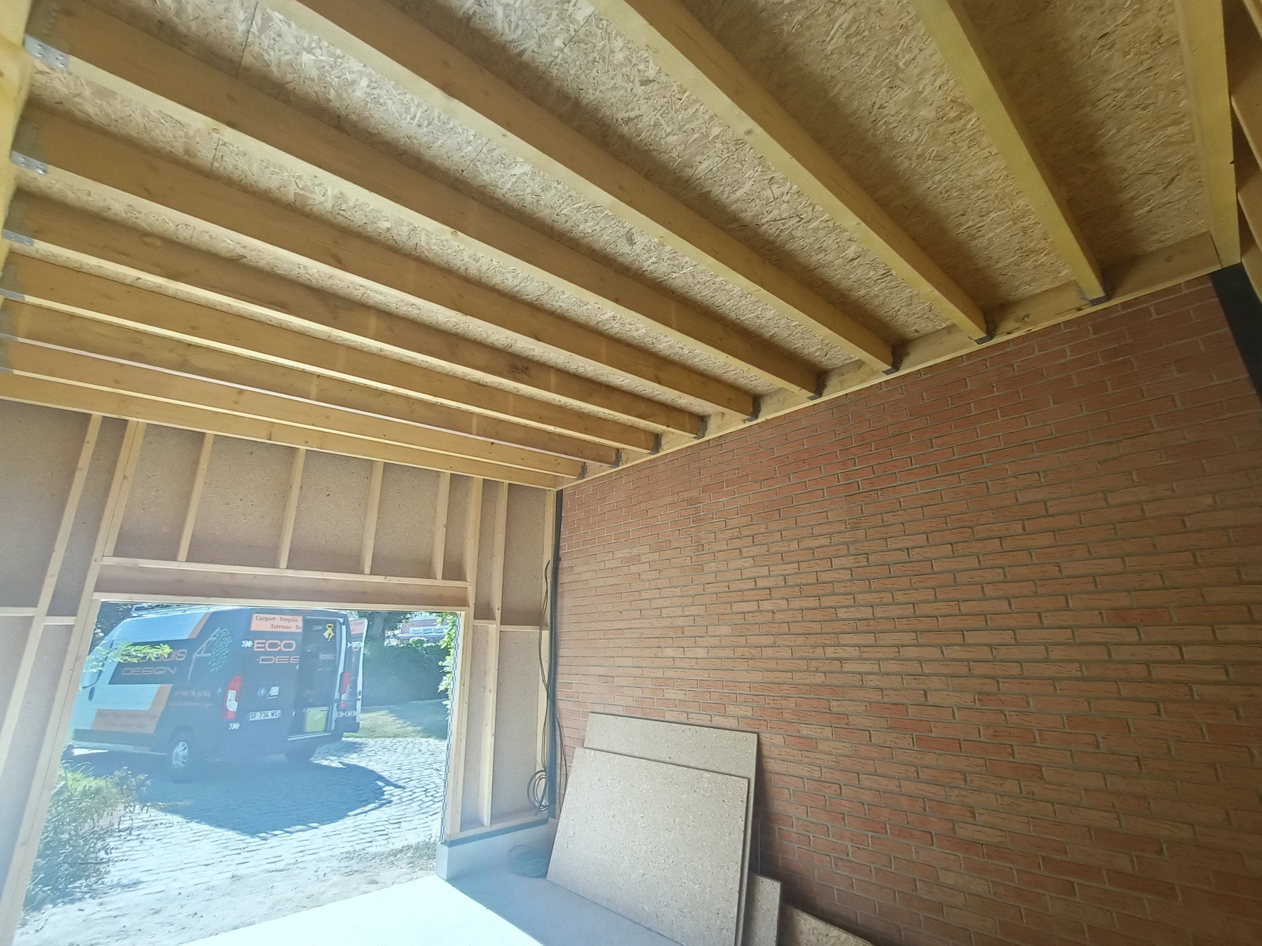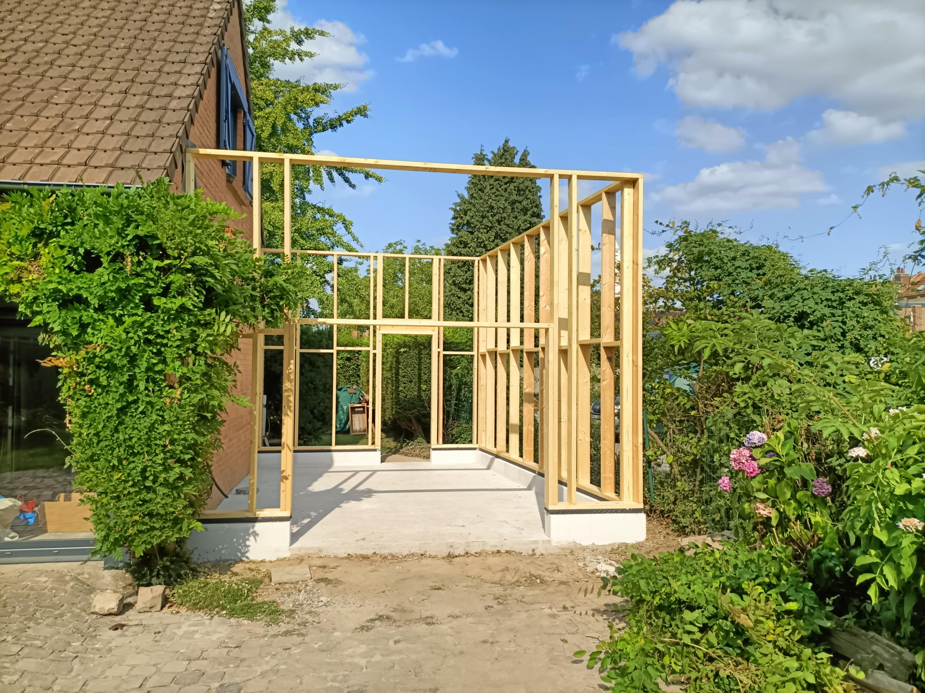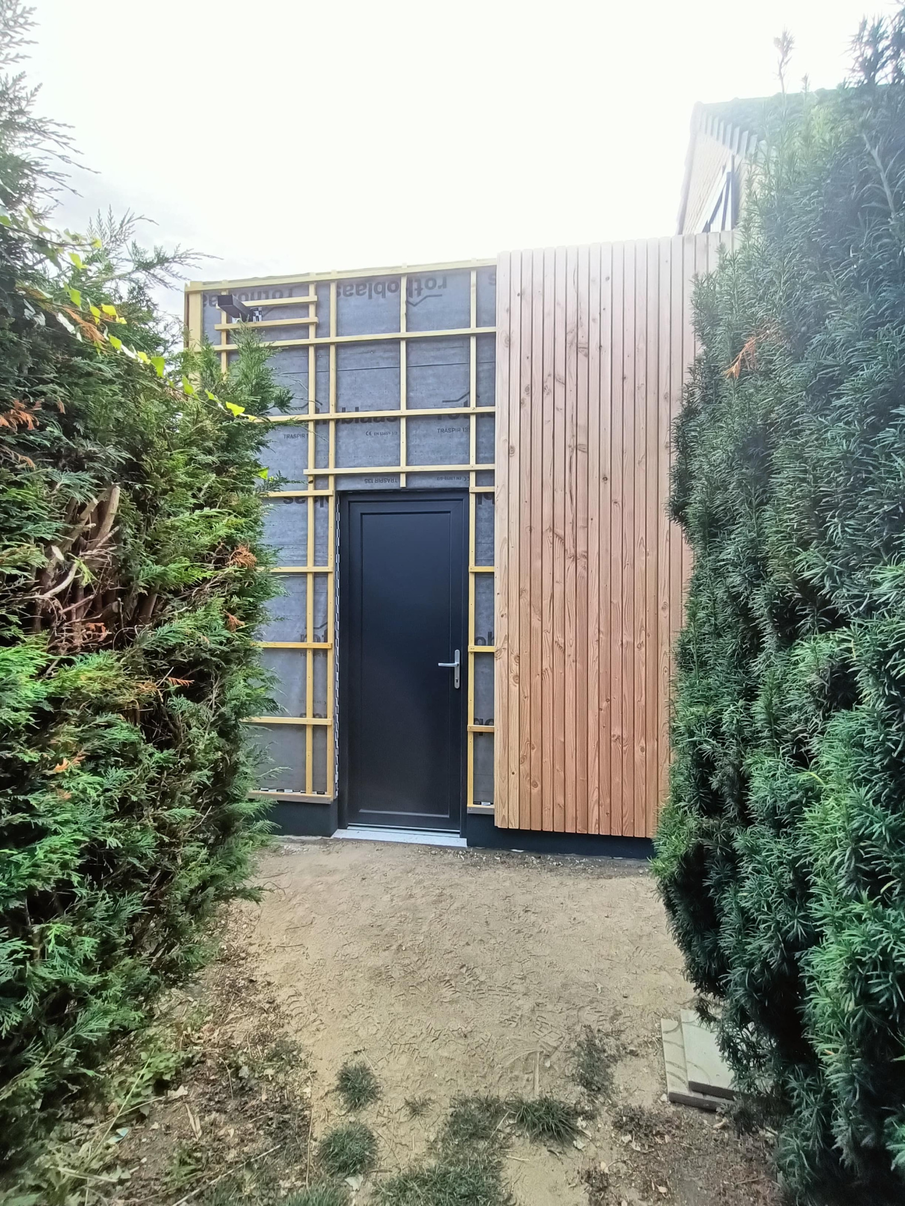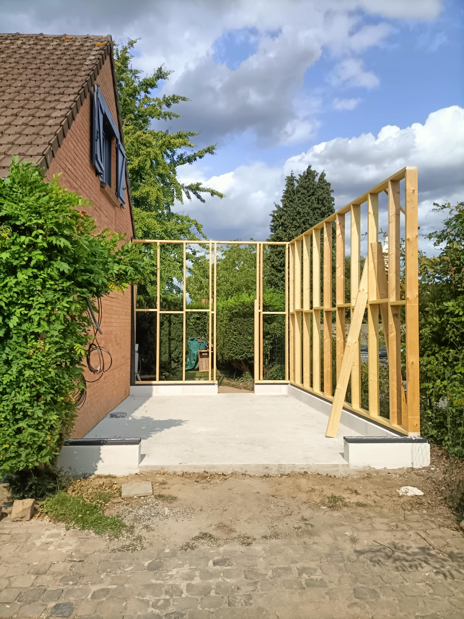 Garage en ossature bois avec bardage en faux claire voie naturel | Lesquin