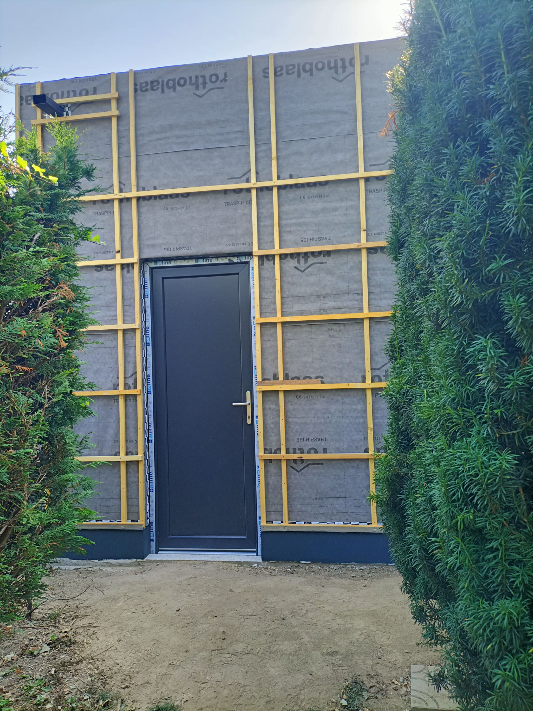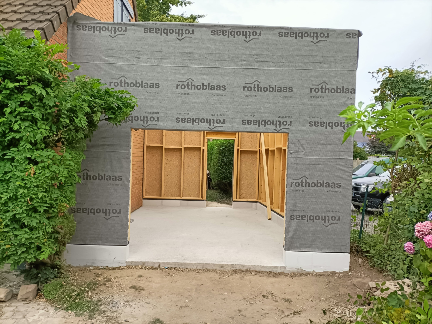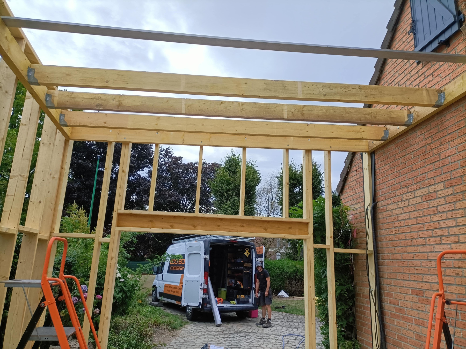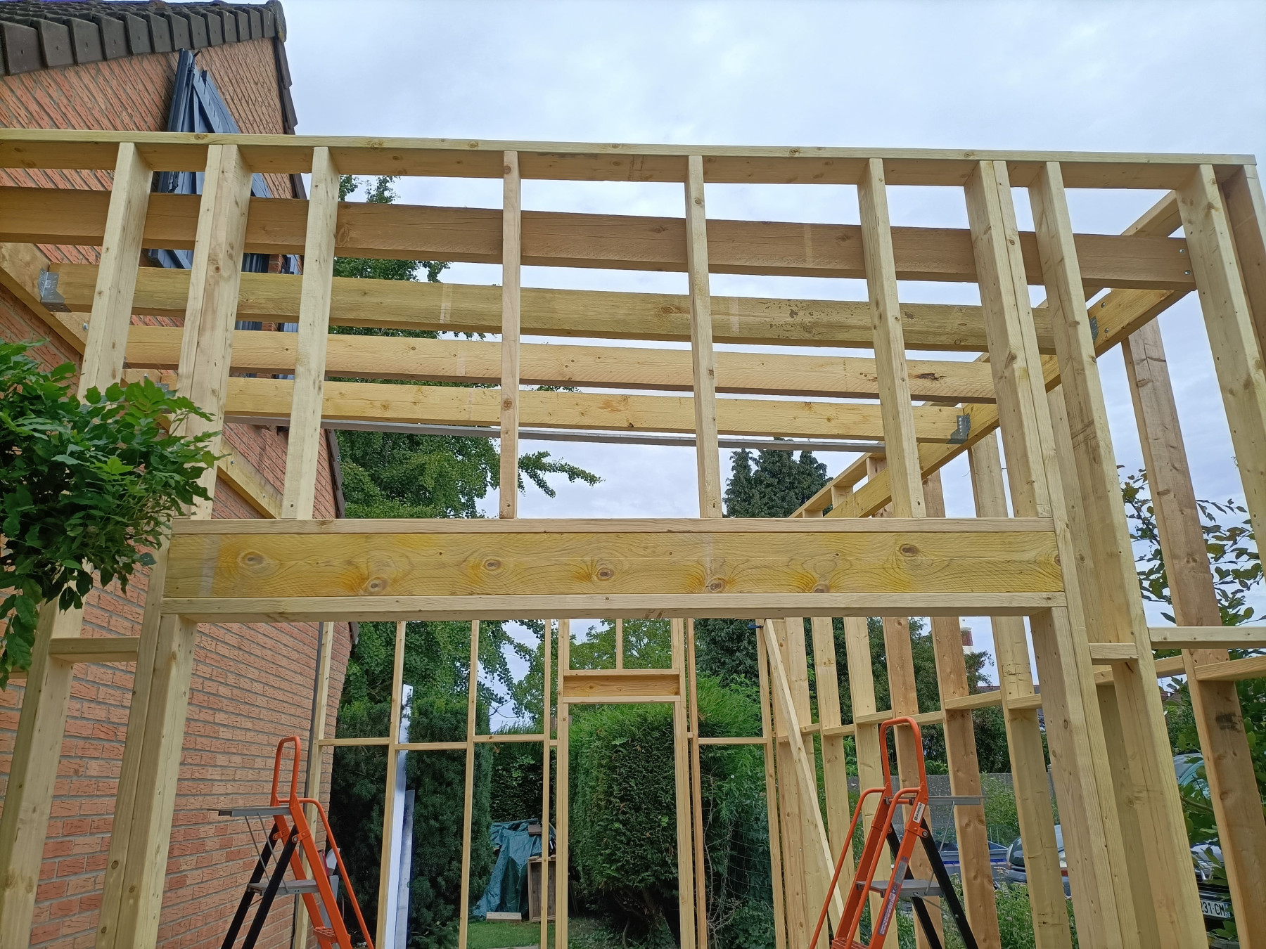 Garage en ossature bois avec bardage en faux claire voie naturel | Lesquin